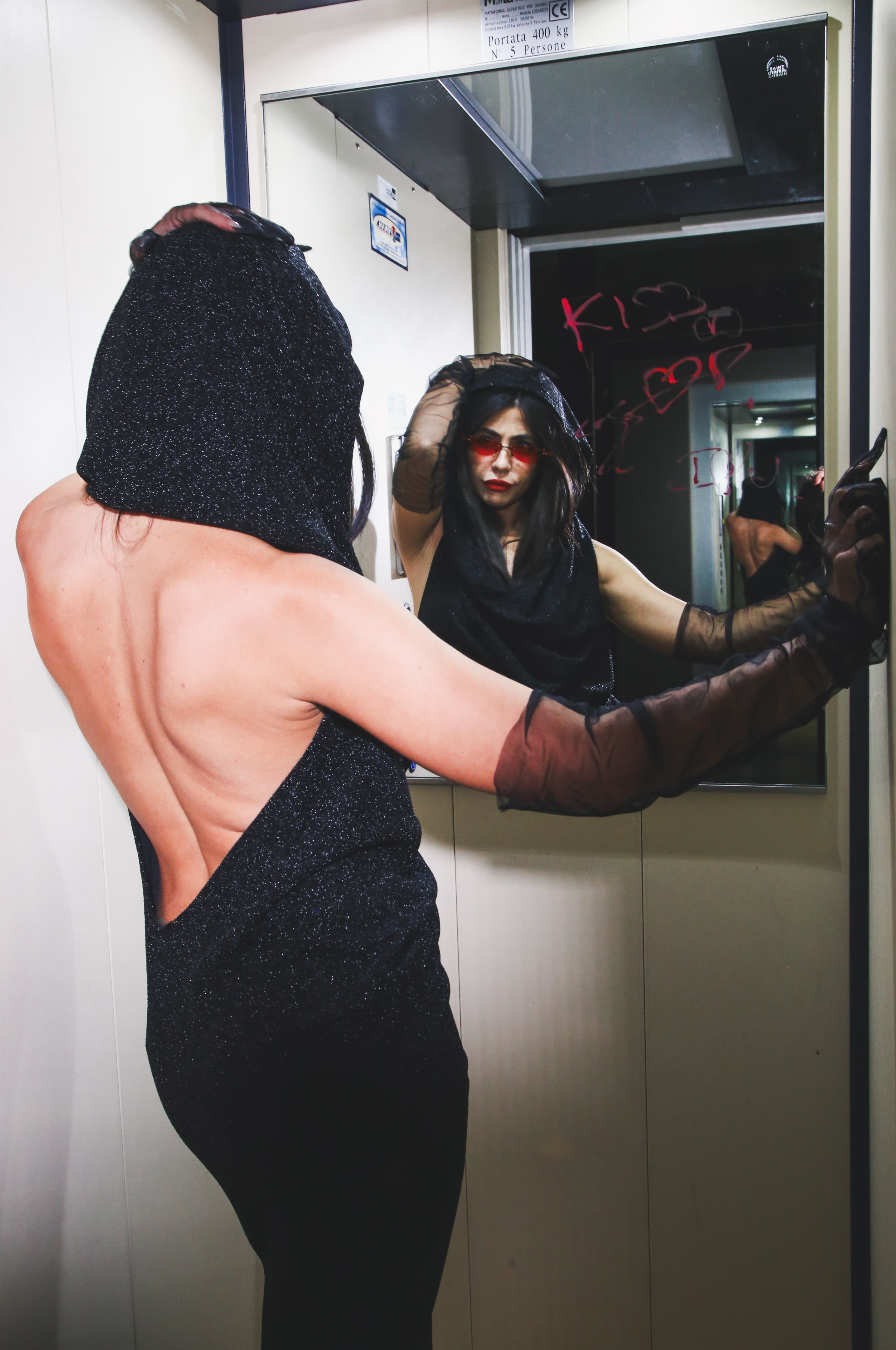 P6161 ABITO LUNGO COLLO CROLLATO LUREX NERO