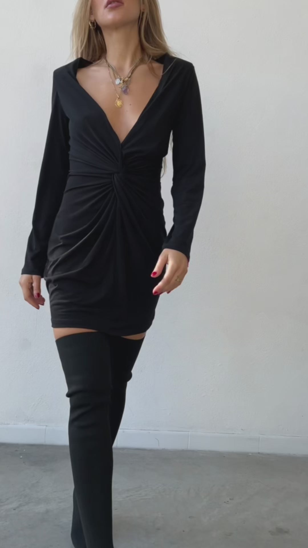 A6077 ABITO CORTO CON NODO MICROFIBRA NERO