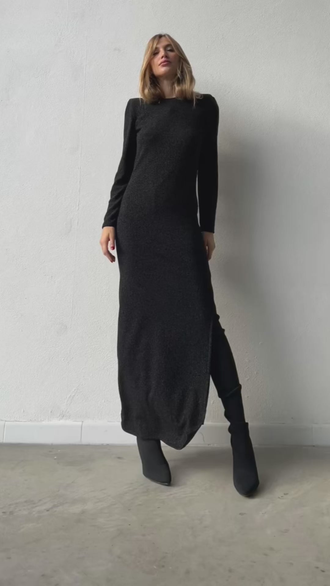 P6161 ABITO LUNGO COLLO CROLLATO LUREX NERO
