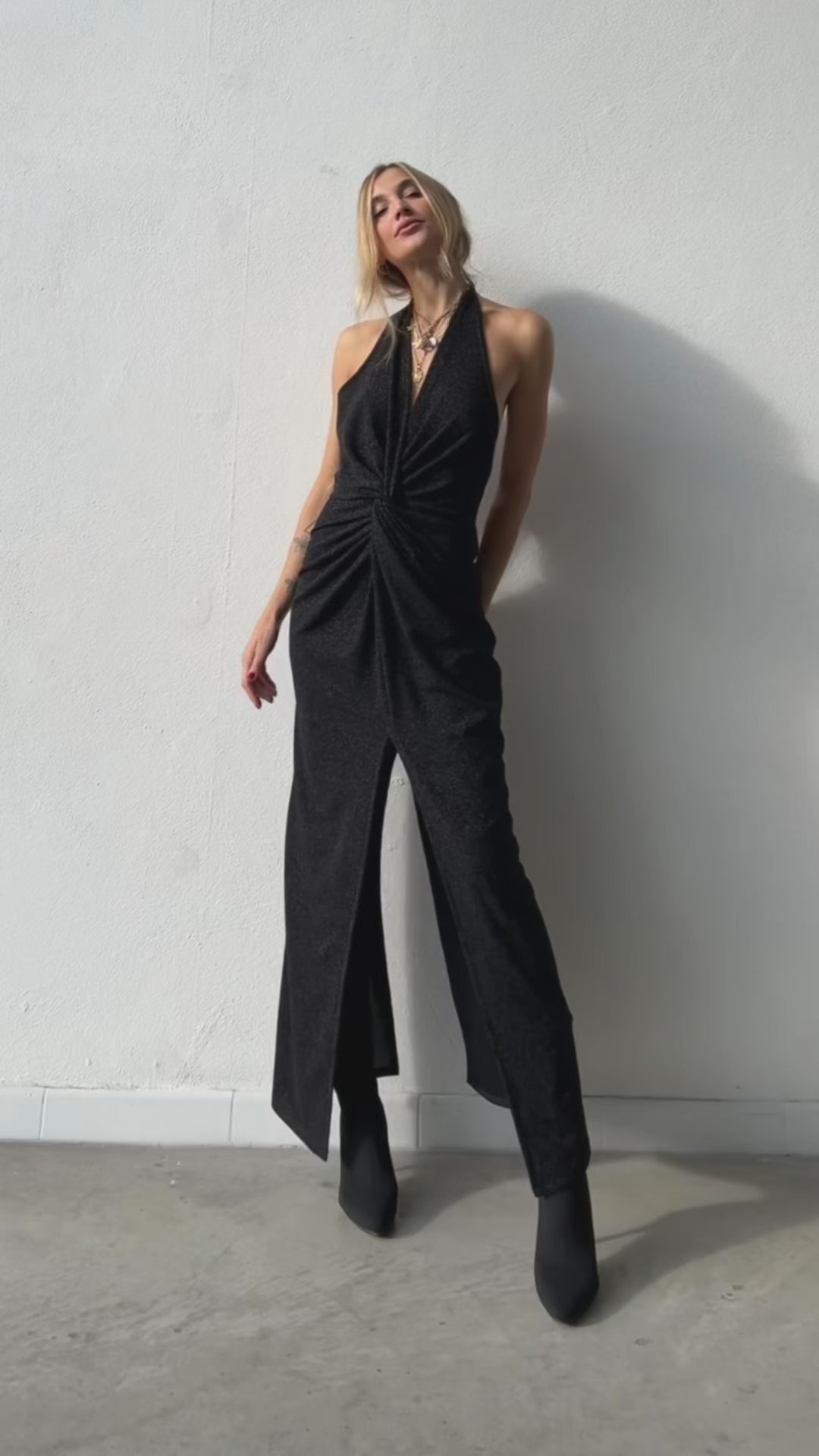 P6163 ABITO LUNGO NODO ALLACCIATO AL COLLO LUREX NERO