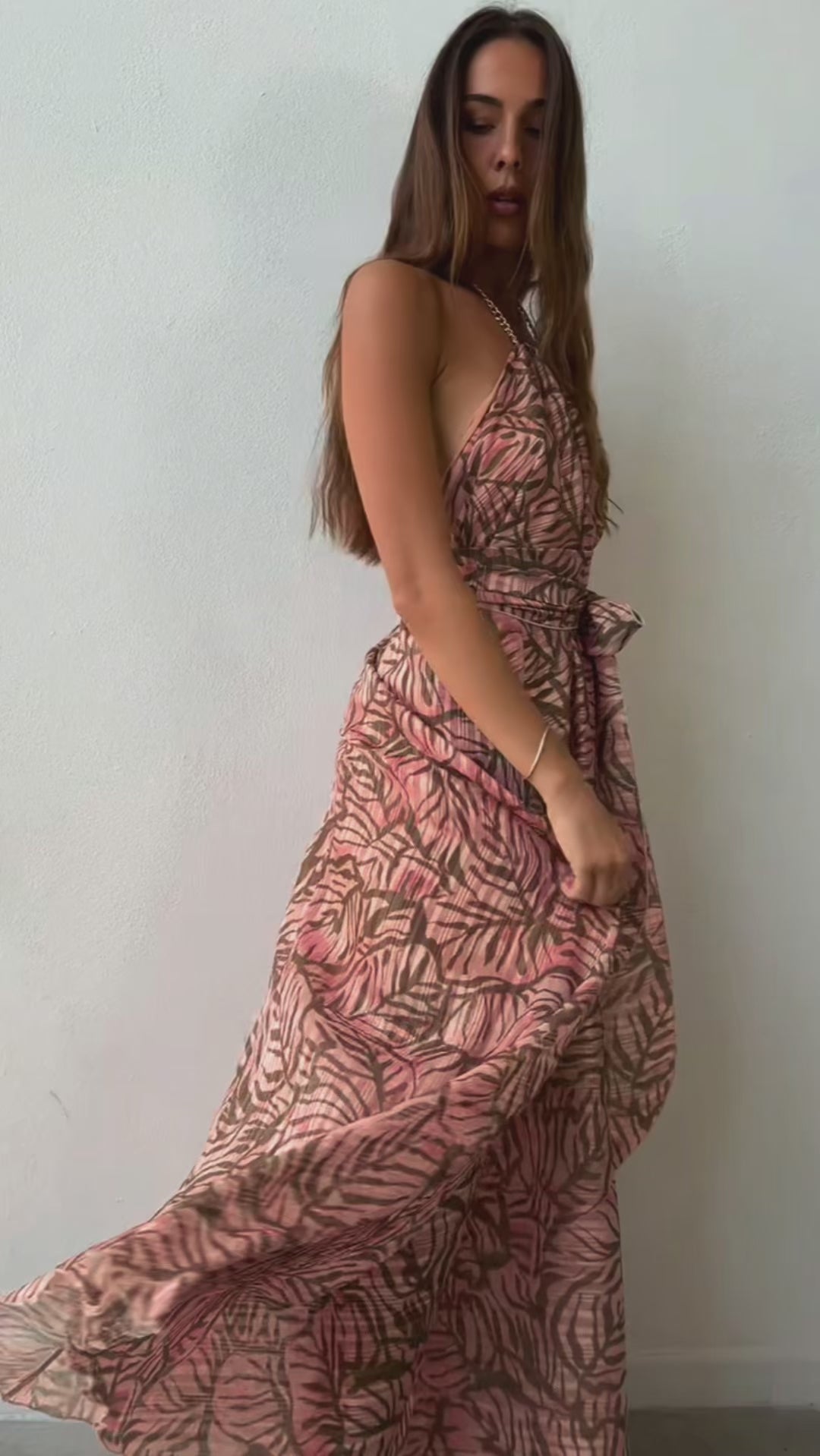 P3169 ABITO LUNGO COPPE MARILYN A RUOTA CON CINTURA TABACCO