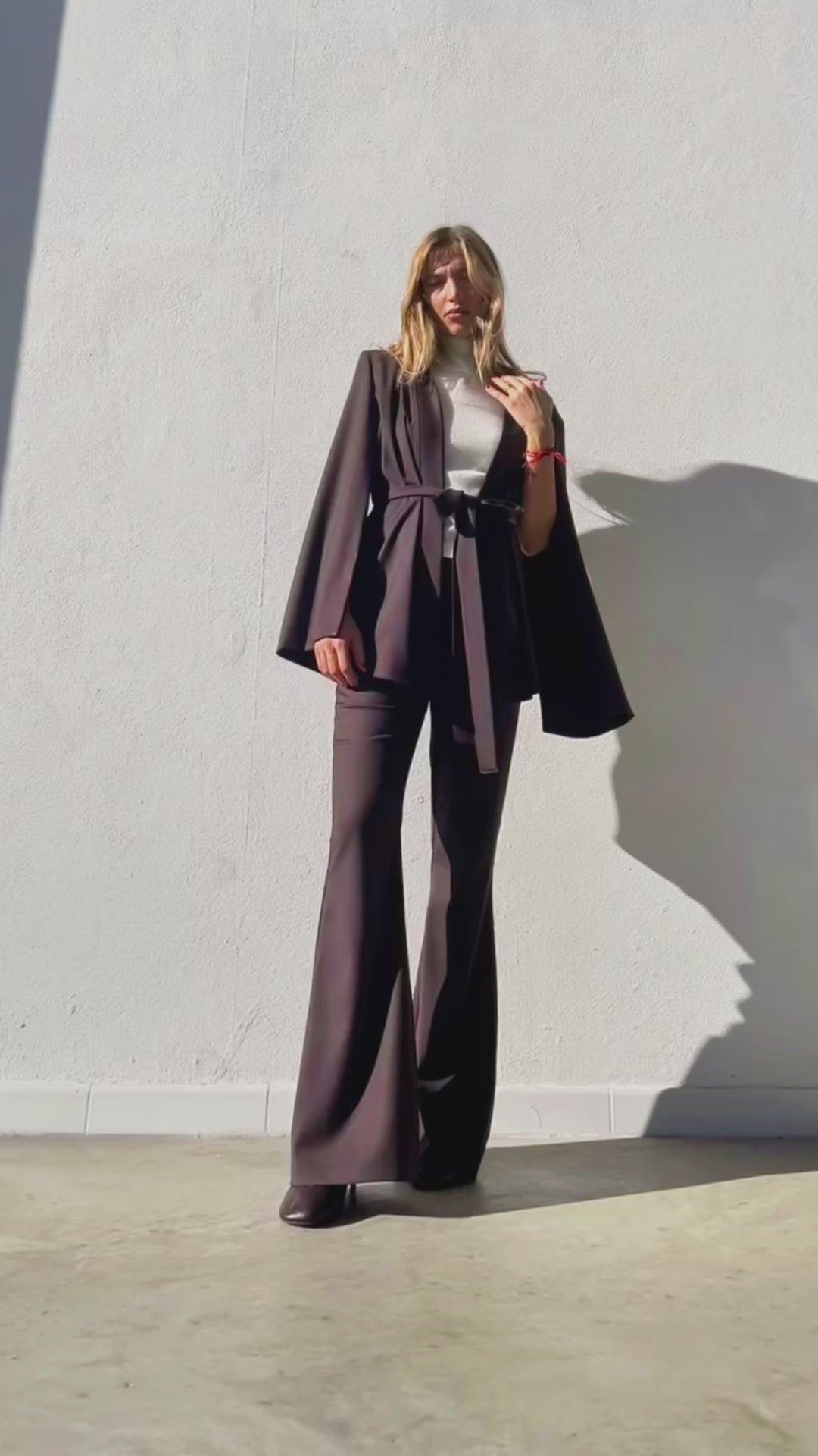 A6055 PANTALONI A ZAMPA CON ZIP MARRONE