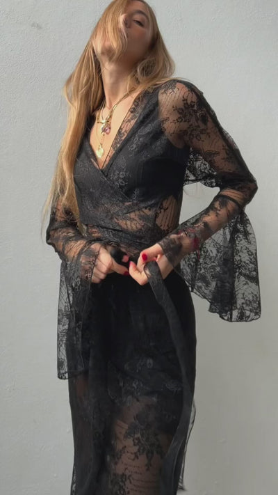 F4020 CAMICIA MANICA A RUOTA CON FUSCIACCA PIZZO NERO
