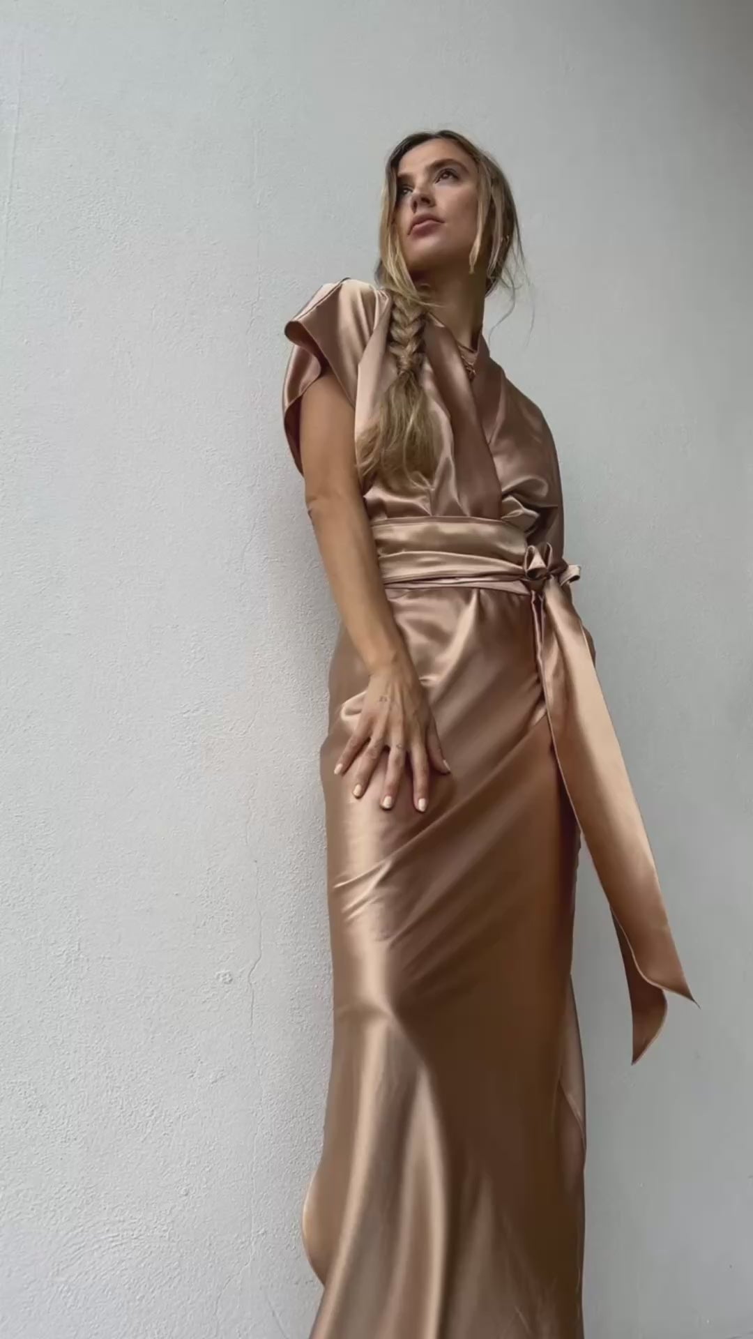 F4165 ABITO COLONNA KIMONO INCROCIATO CON CINTURA ORO SCURO