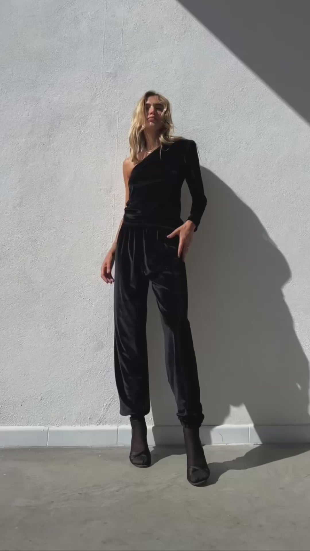 Top monospalla con spallina imbottita, manica lunga , tessuto elasticizzato